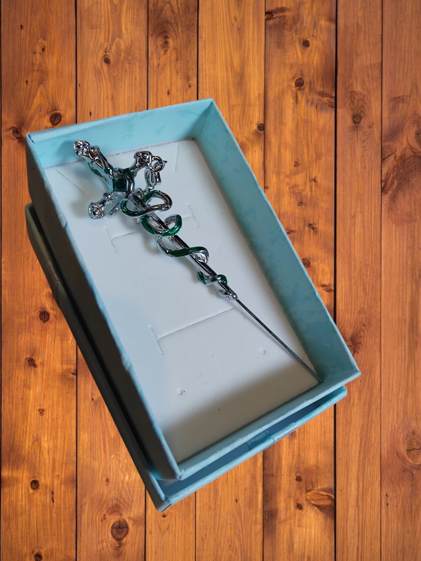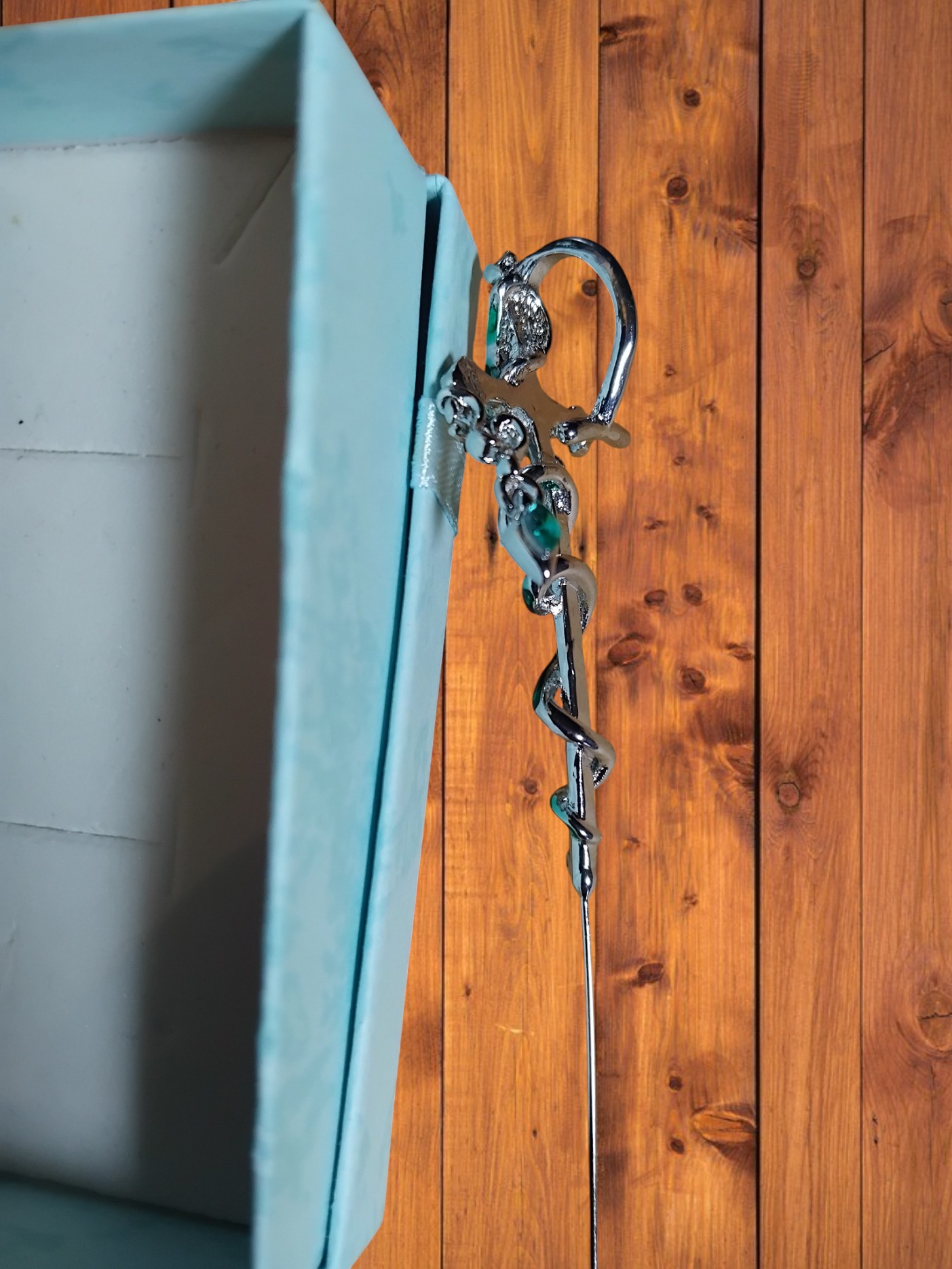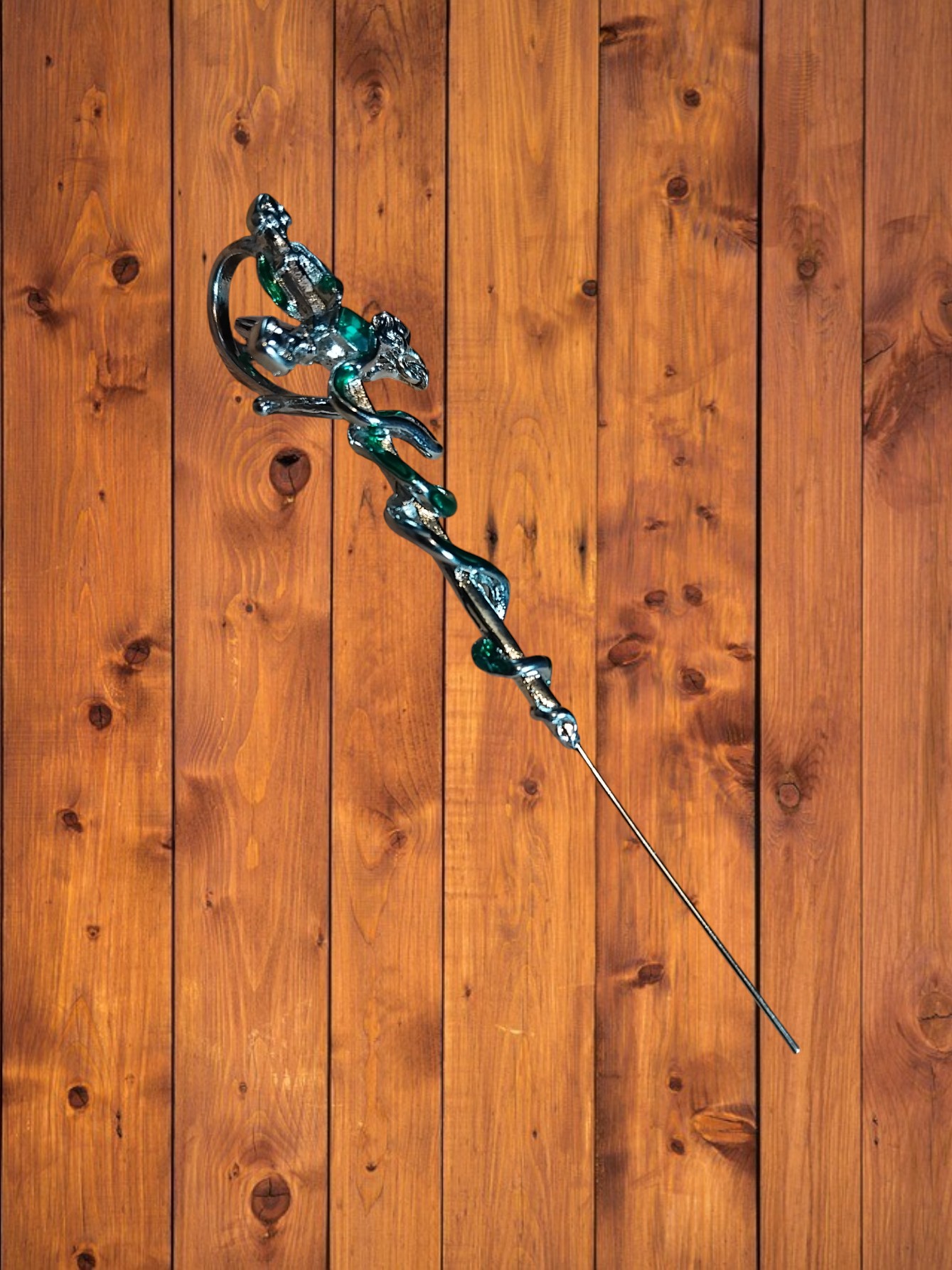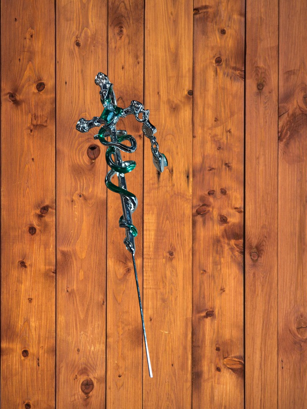 Snake over sword single over ear earring. Length approx. 8cm