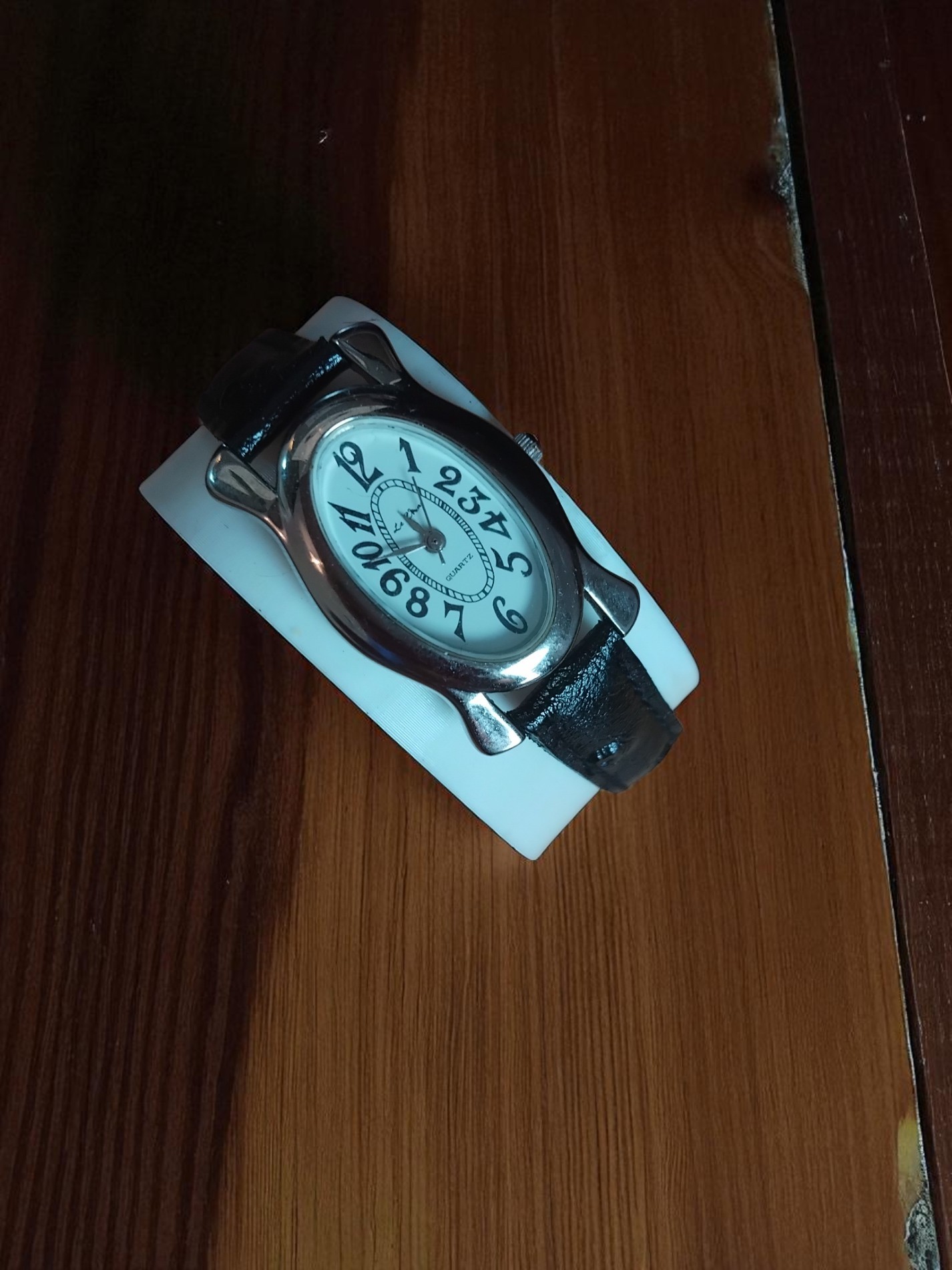 (Lc35) Le Chat ladies/teens leather strap dress watch with oval white face approx. 3.5cm in length. To suit wrist size approx. from 14-19 cm.
