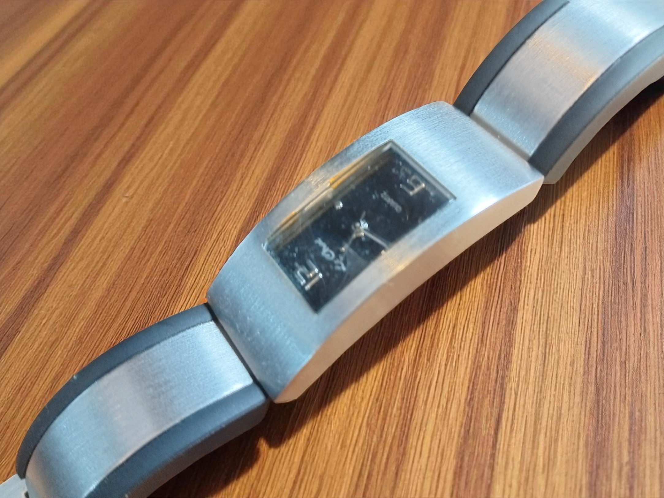 (Lc48) Le Chat ladies/teens Small brushed stainless steel strap watch . Face approx. 3.5cm in length. To suit wrist size approx. from 16-17 cm.